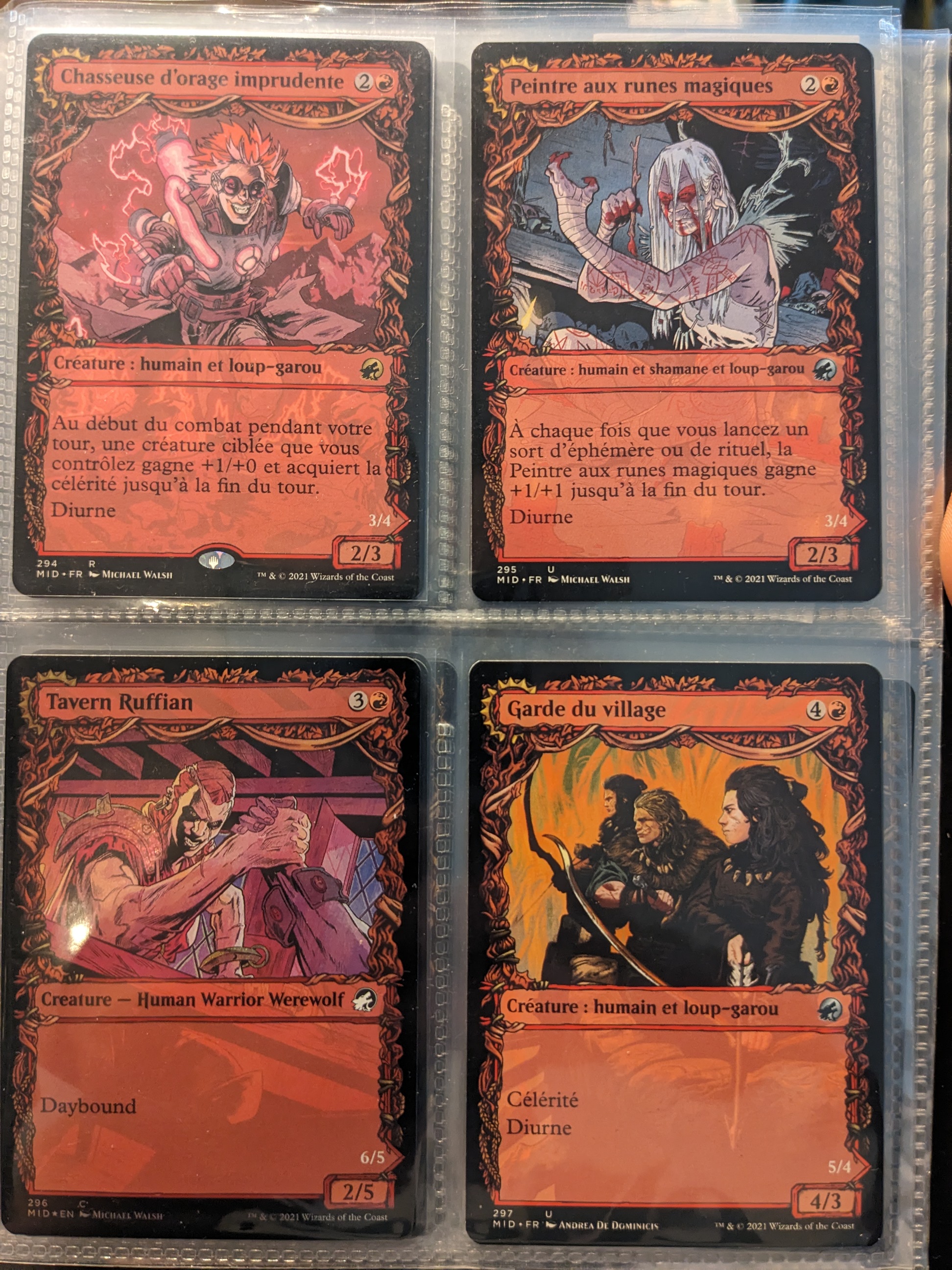Après les vampires, on reste dans le lore d’Innistrad avec l’archétype loup-garous, pas franchement le deck qui fait le plus dans la dentelle mais il a le mérite de pas se disperser dans tous les sens. Sa version commander peut aussi être intéressante. Les versions alternatives apportent un petit pimp sympa à votre deck :